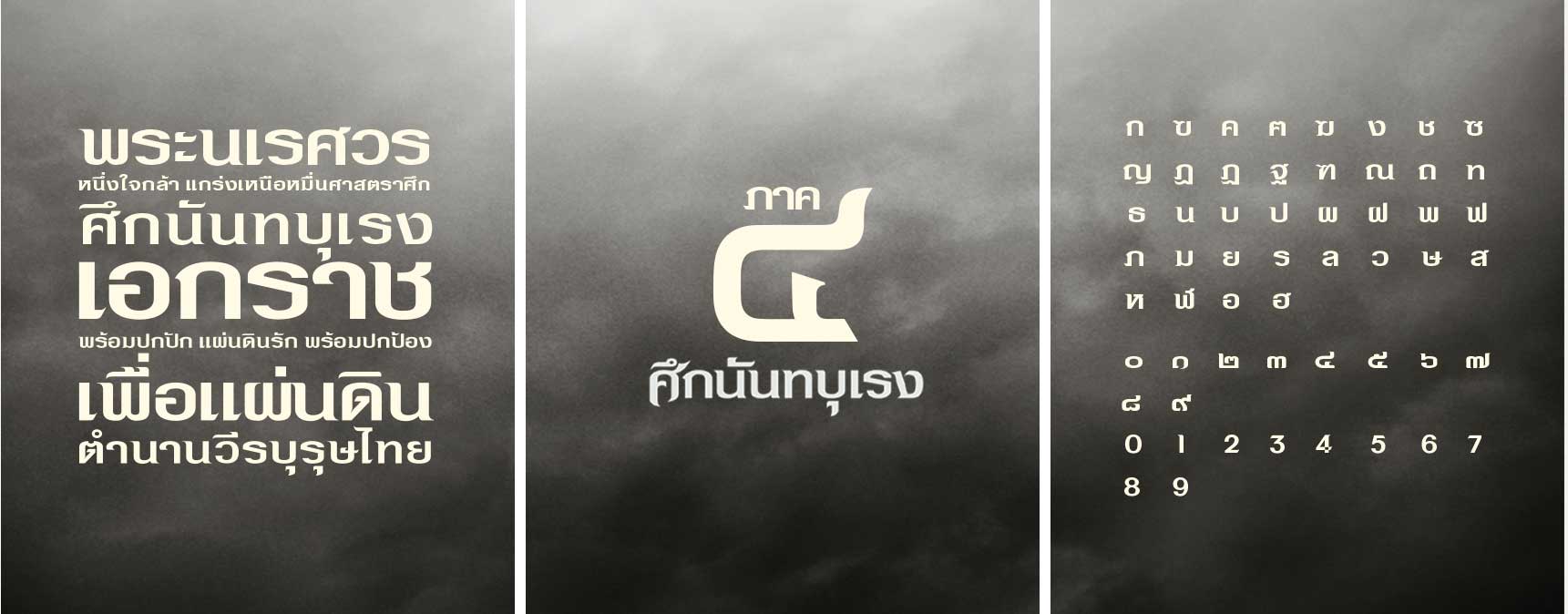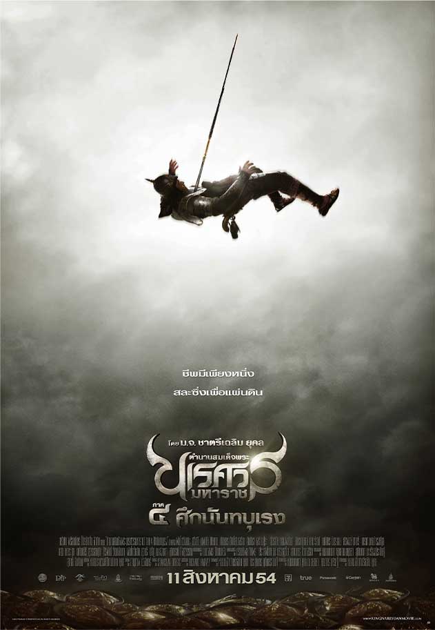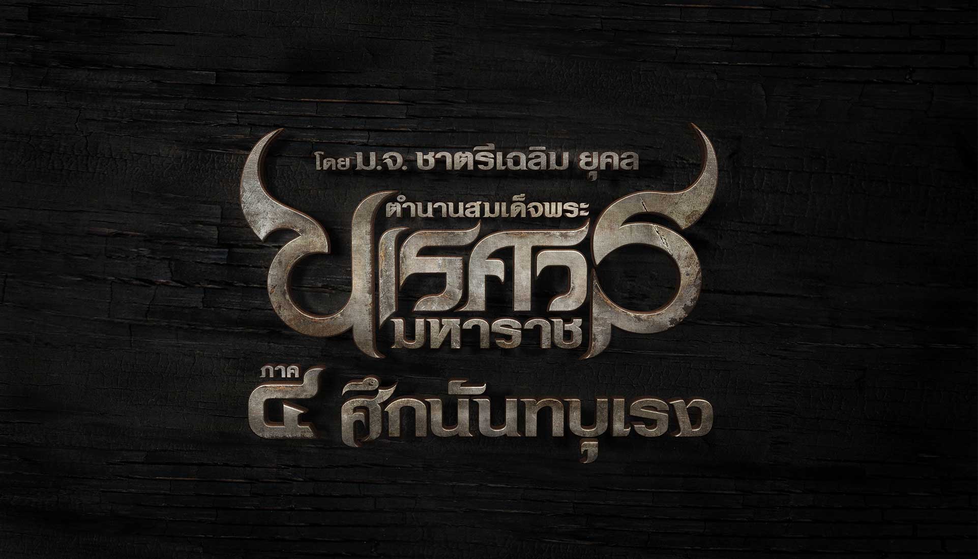 The logo’s design was adjusted from previous sequels to be more potent by bolding the letters, decreasing space between the letters, and adding the rough texture, worthy of being a warrior while maintaining the greatness of a king and the delicacy of being Thai. The font made it more suitable for the movie’s branding. It gave the feeling of a Thai historical film and the danger of war by adding sharpness at the distal part of the font, increasing the width of each font and keeping the sense of greatness of being Thai.