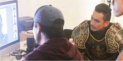 Color, mood and tone composition should be similar. The light tone for Thailand and the Dark tone for Myanmar created awareness of the movie's branding in the same direction, making it easy to remember and raising awareness of a target group. The direction of the photograph was used to convey the feelings of the characters as much as possible, according to their roles. For example, the king's determination and strength, the warrior's steady, the monk's serenity, the woman's worry and sorrow, the maniac's innocence, and the invader's malice raised the sense of the movie’s history by the details of clothing, costume, armor, jewelry, weapon, and atmosphere to clarify the communication and make the film more realistic.